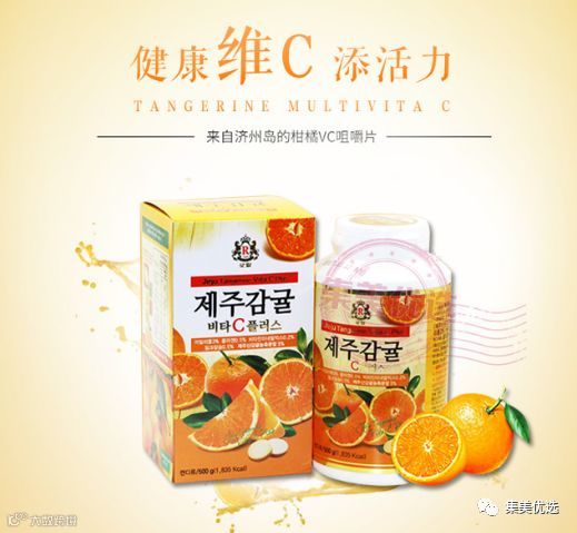 韩国 济州甜橙维生素C片 VC橙味咀嚼片 济州岛特产—甜橙做的维生素C,在韩国很有名气噢!韩国很多MM都在吃!!!100%橙橘提取维生素C咀嚼片,500g超大容量,酸酸甜甜很好吃,具有增强人体免疫力、消除疲劳的功效,同时还有美白肌肤,增强皮肤弹性的功效,是韩国学生们和上班族缓解压力、消除疲劳的常备养生品,可以当作零食/桔子糖吃,1天吃2-3片,老人、小孩 、孕妇、全家适用,可补充每个人每天需要的维生素,物美价廉,一天不超过5片,补充足vc不容易感冒哦!
