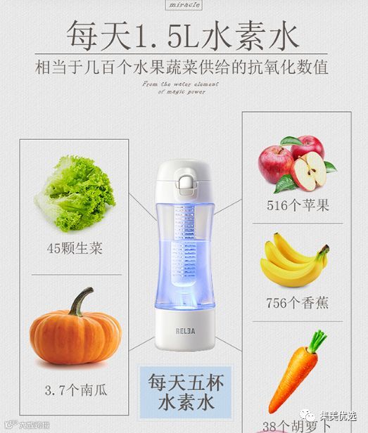 Relea/物生物水素富氢水杯,采用纯物理技术,能够在1分钟内快速改善水质,制出的水具有高含氢量、小分子团、弱碱性的特点。多喝富氢水,能有效调节肠胃吸收、增强血液循环、让血液得到净化,提高抗氧化同新陈代谢的能力。