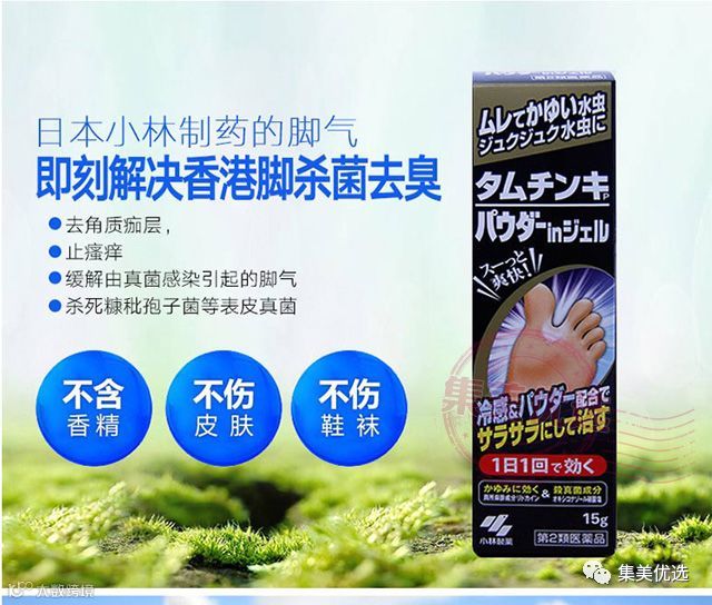 对抗各类脚气、脚癣的超级宝贝!将脚气、脚臭、脚癣和坏心情统统一扫光! 小林制药的品质不用多说,日本顶级日用品公司。这款脚气膏同样保持了小林的一流品质,有效缓解真菌感染引起的各类脚气、脚癣。能抑制瘙痒,减少皮屑脱落调节皮脂分泌, 促进健康皮肤再生、独特添加的薄荷成分,带给您清凉舒适的使用体验。