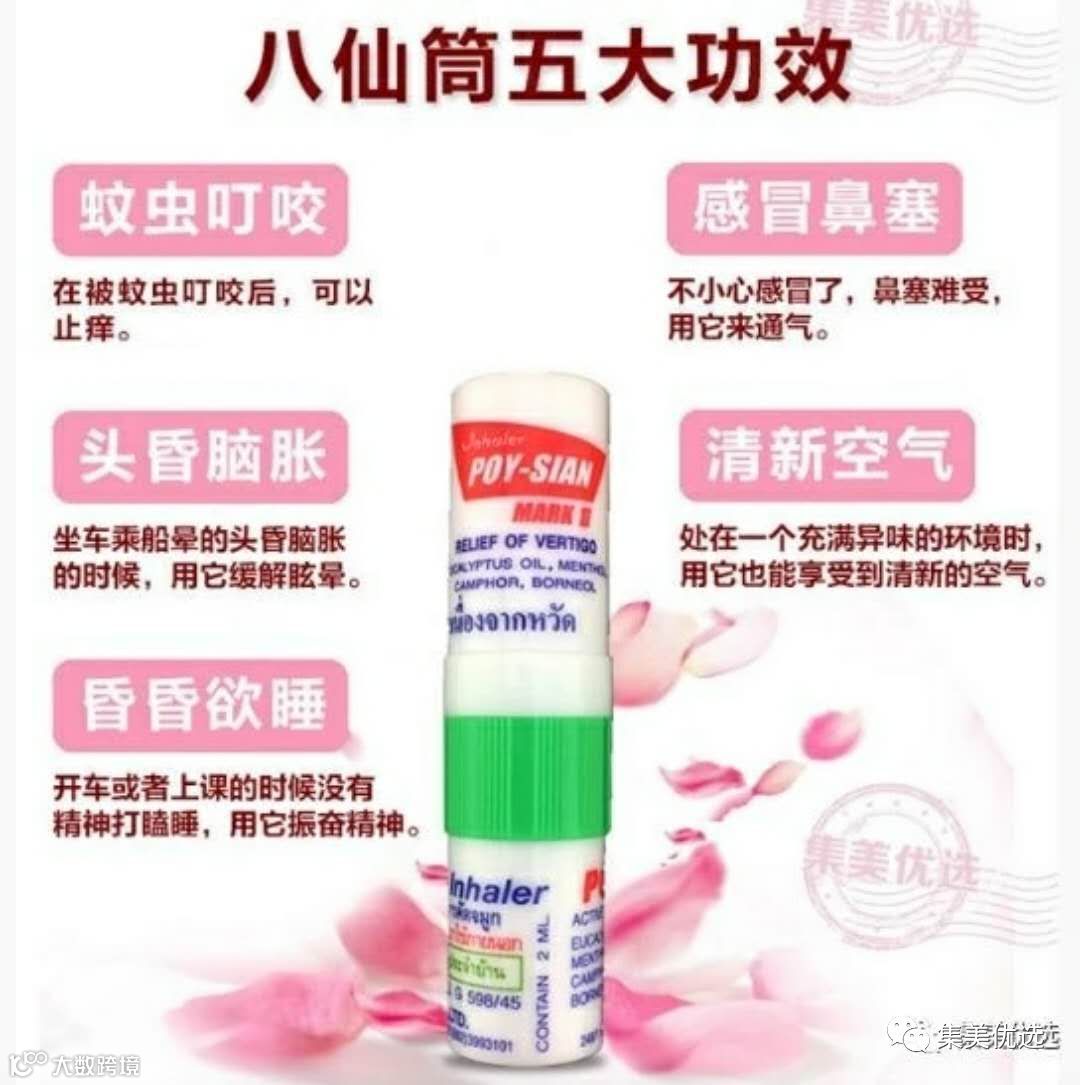 一头是鼻吸,一头是药油,可以点在太阳穴,一支两用。鼻子敏感不通气,可将鼻通的一边放入鼻中嗅一嗅就行了。头痛,头晕,晕车,瞌睡没精神时可将八仙筒的一边放入鼻中嗅一嗅再把另一边在太阳穴上轻 轻点一点,再轻轻的按摩太阳穴。被蚊虫叮咬,把鼻通的油这边擦在伤口上