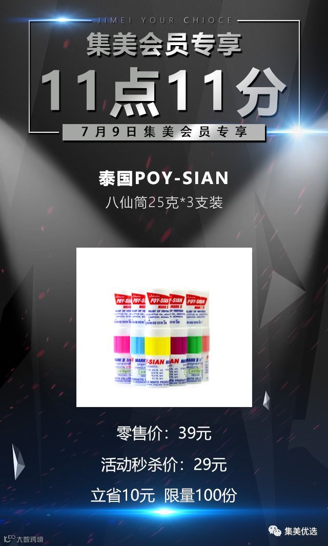 7月9日,11:11,泰国POY-SIAN八仙筒25克*3支装 ,原价39元,建议零售价29元,限量100份手慢无!!!