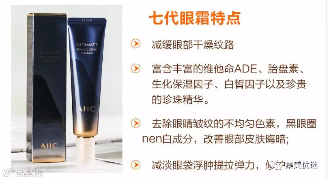 第七代眼霜在功效上可以说是飞跃一样的升级!添加了18种玻尿酸,其他成分也比前几代都更多重要的是!这一次还有焕白的功效,在去除了眼周问题同时,还能让皮肤更加白皙有光泽,而且升级后不仅仅限于眼部、还可以用在法令纹,颈纹和全脸。