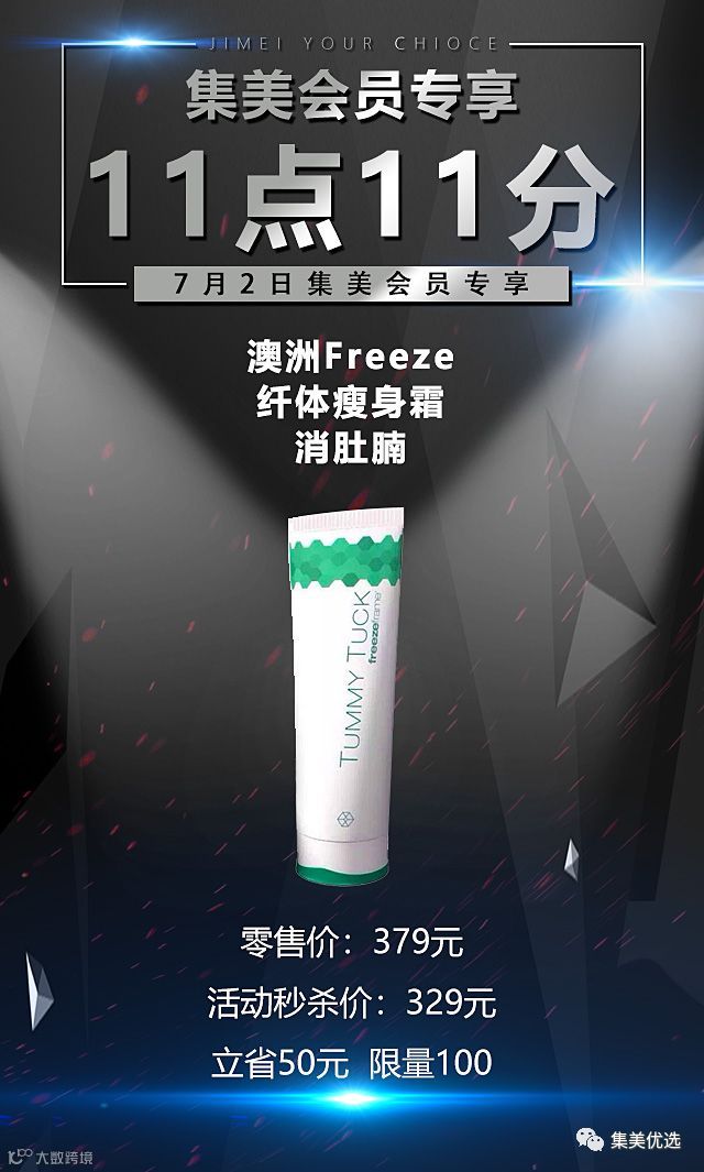 7月2日,11:11,澳洲FreezeFrame纤体瘦身霜 紧腹消肚腩,原价379元,建议零售价329元,限量50份手慢无!!!