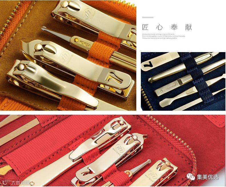 韩国777指甲刀套装,家庭必备的生活品质单品,这款指甲套装,外壳造型很带手感,拍出来好像很大盒,其实就和掌心般大小。主要是777的指甲刀真心好用,很快~完全拯救了我爱美甲、指甲爱劈开的的双手。这套小巧出游出行必带上