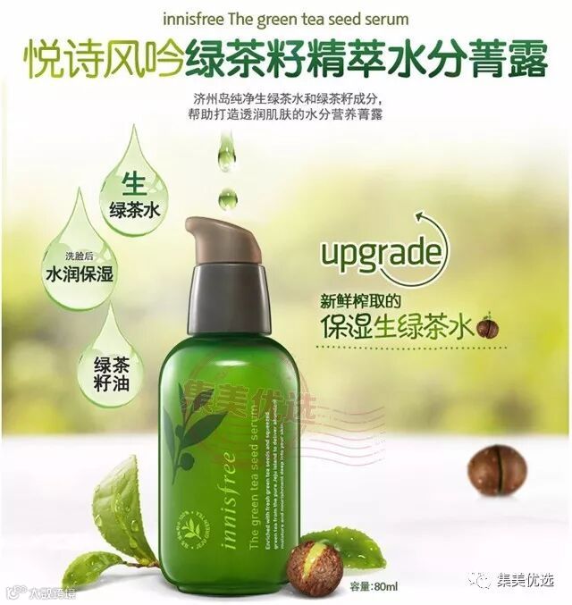 韩国 Innisfree 悦诗风吟绿茶精粹补水保湿精华液 80ml 小绿瓶