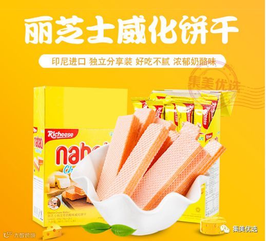 丽芝士纳宝帝奶酪威化饼干奶酪味浓郁,营养丰富,松脆可口带来幸福好滋味,非常浓厚的芝士味,很香又酥。超级美味。喜欢芝士味的亲们,吃过一定会爱上。奶酪威化饼是你居家、旅行常备的休闲美食,伴您尽情享受品味生活.