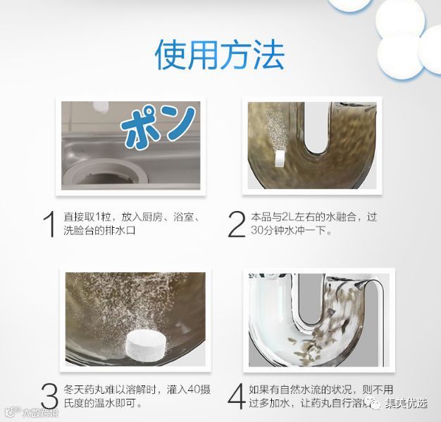 下水道很容易被头发堵住,动不动就滋滋往外冒水。这时候只要往下水道放入一颗除臭杀菌丸,等30分钟再用水冲一下就行。能有效去除堵塞下水道的油腻物质及异味。可用于座便、浴室下水道、洗漱台下水道等的清洗、消臭:放入本产品一粒于要清洗之处 30~60分钟后用水冲洗即可。另外清洁丸还有蜜桃味和香橙味哦~