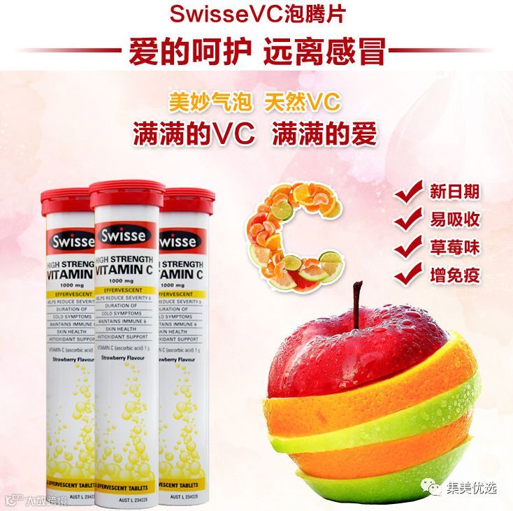 澳洲 SWISSE 维生素C 泡腾片VC草莓味 20片/条 补充日常所需