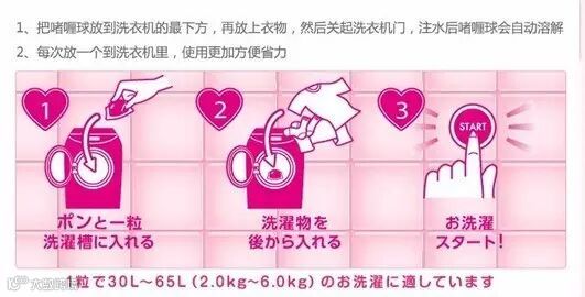 3、遇水自动溶解,使用超级方便环保无残留,省水又省电每个小球都是啫喱果冻的感觉,一个啫喱洗衣球适合的洗衣量为:6.5kg以下。