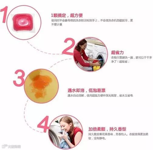 2、使用时不会象传统的洗衣粉沾粘到手上,不会使洗衣机四壁脏污,更不需计量;