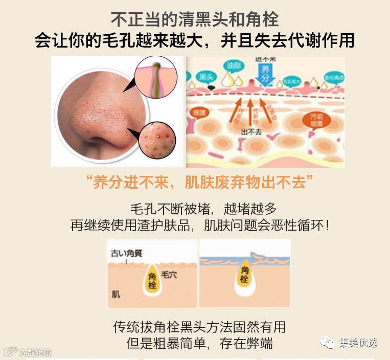 除了含有天然乳酸苹果酸。软化角栓。清除毛孔内的黑白头和老化角质。促进皮肤新陈代谢。还添加了玻尿酸。胶原蛋白等高保湿成分。收缩毛孔的同时给肌肤补充水分。