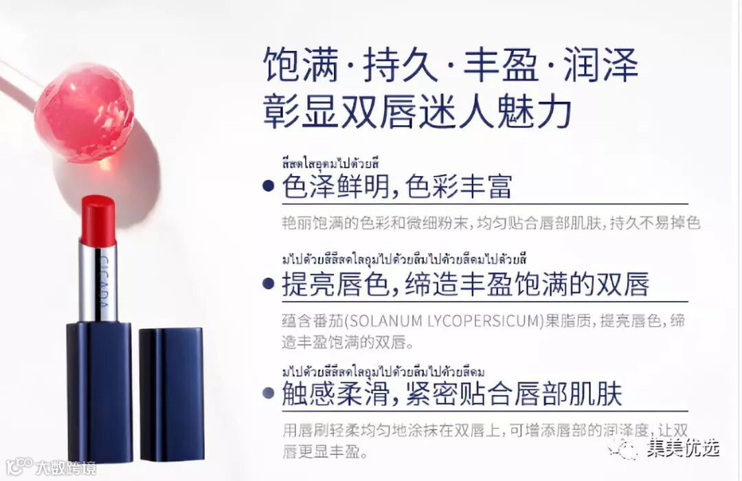 推荐泰国悠婵CICADA西瓜红水果唇口红