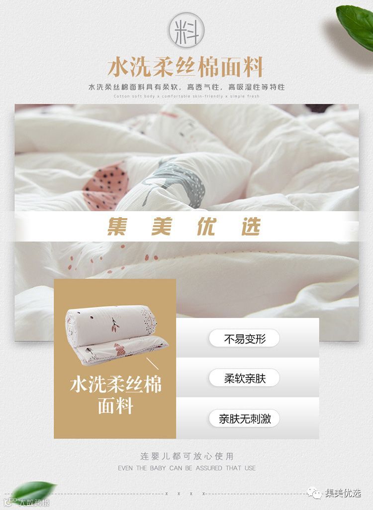 集美甄选夏季薄被子可水洗空调被单人午休简约韩版,水洗面料光泽柔和,手感柔软,非常呵护肌肤,细腻平整的手工工艺,羽绒丝填充,无任何添加,清新自然,不易滋生细菌,不仅柔软贴身、不易变形,连婴儿都可以使用。