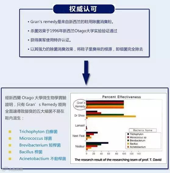一般的脱臭制品至在于消除臭味,而Gran's Remedy 鞋用除菌消臭粉的原料在于彻底阻断细菌的繁殖,达到除菌除臭的效果,干净卫生,预防脚气各种菌类足部疾病。