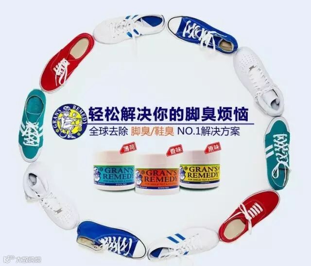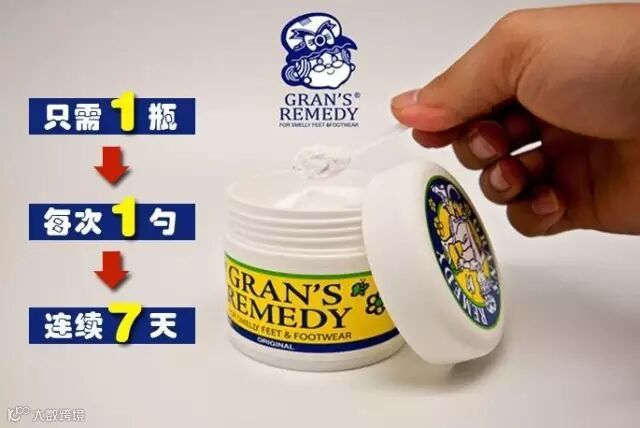 Gran's remedy 老奶奶 除脚臭粉。让你不在为脚臭烦恼~每天一次只要一小勺直接倒在鞋子里 ,给鞋柜里的臭鞋们杀杀菌去脚臭。卖到脱销,每天一勺,七天后还你一对干净舒适的脚丫~~