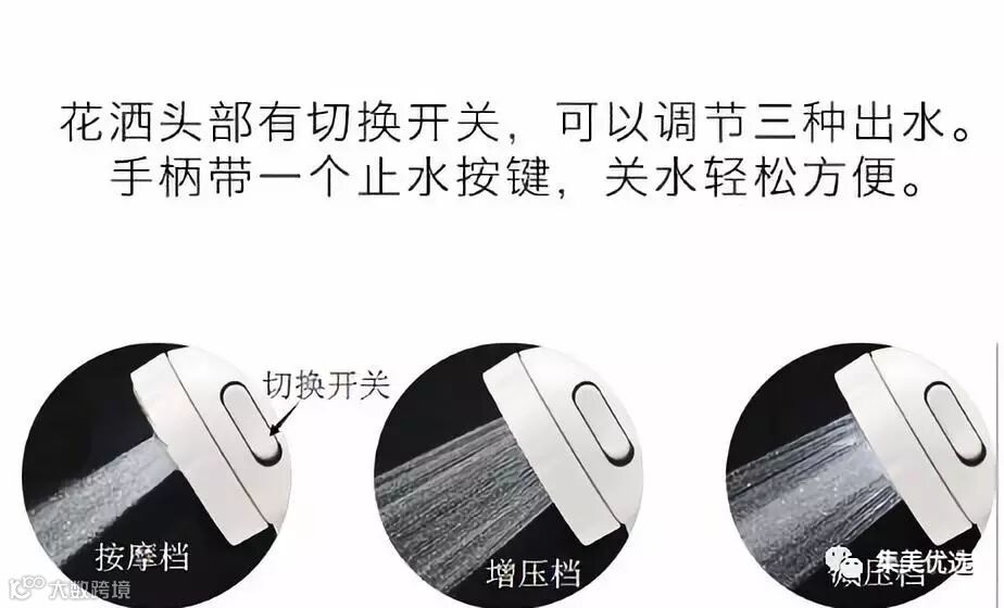 这款淋浴喷头不仅外形美观,而且比普通淋浴喷头省水。它在使用的时候更加方便,这款喷头的立架上也有一个开关按钮,可以调节三种水流,从而进一步提高淋洗体验,看上去也更具有现代感。