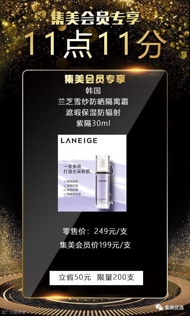 5月25日,11:11,韩国 兰芝雪纱防晒隔离霜 遮瑕保湿防辐射 紫隔30ml ,原价249元,建议零售价199元,限量200份,手慢无!!!