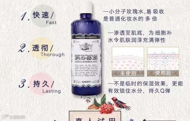 ACQUA ALLE ROSE 源自1867年的意大利佛罗伦萨,沿用纯正玫瑰精油,天然山泉水,古老配方传统制作,不含酒精、色素,提亮肤色,补水保湿。适合所有肤质,尤其适合敏感性肌肤使用。150年经典美丽传承,意大利销售领先的玫瑰水,沿用纯正玫瑰精油、天然山泉水、古老的配方和传统的制作,成为欧洲女性的美容秘诀,并且流传至今。