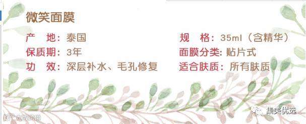这是泰国继笑脸薯片后的第二大微笑主题品牌,自拍可以玩到停不下来~一共五款笑脸面膜,主要功效就是深层补水,配合泰国多种植物精华制成,也是泰国很有名的蚕丝面膜~超级薄!
