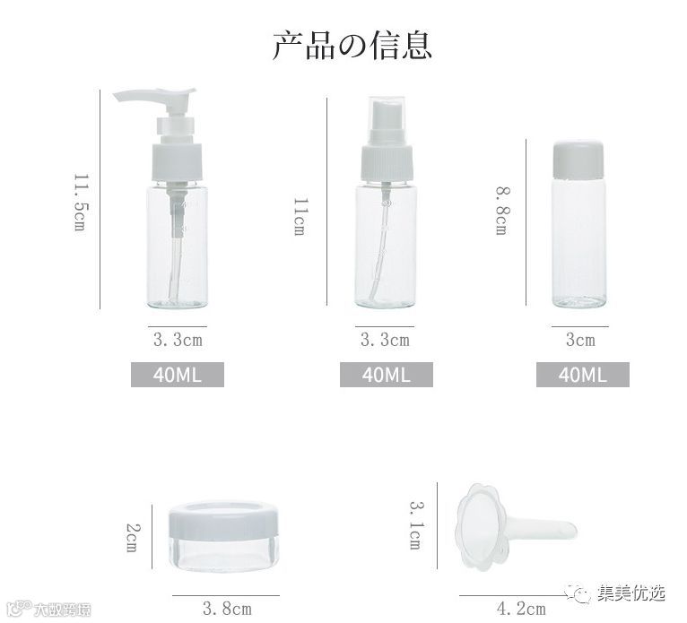 日本 便携式旅行分装瓶套装喷雾瓶化妆品旅游小瓶子七件套
