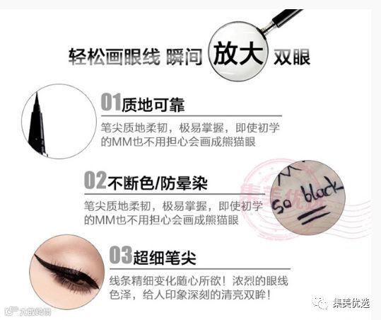 泰剧很红,带动泰国护肤品,彩妆也很红,在泰国你可以不知道chanel不知道Dior但是你绝不能不知道mistine!泰国mistine神作眼线笔,浓黑不晕染。顺滑超好画!即使是新手也能快速上手,快干型,用一次绝对会爱上的眼线笔