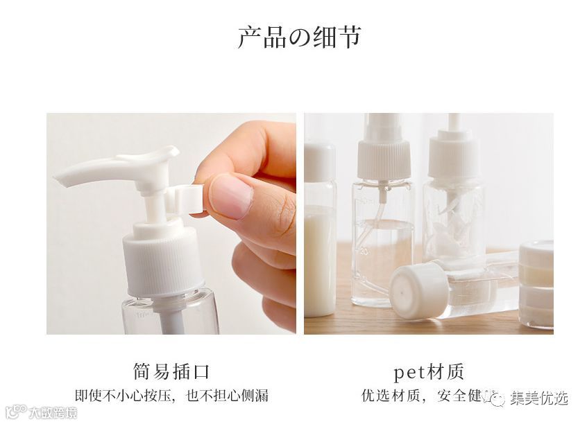 如消毒处理。分装瓶分装的乳液都是与人体皮肤接触的,所以保证乳液是安全的,不被污染。这就要求瓶子本身要安全,不含病菌。因此,消毒是非常重要的。消毒的方法很多,但需要考虑到瓶子本身的材质问题。如何使用旅行分装瓶?