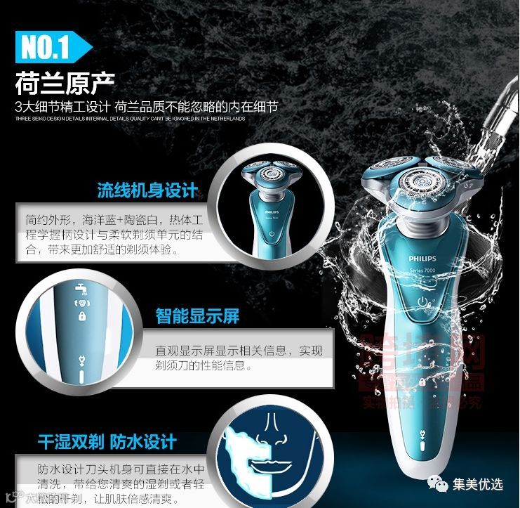 Philips飞利浦剃须刀S7370/12 电动剃须刀全身水洗5向刀头刮胡刀