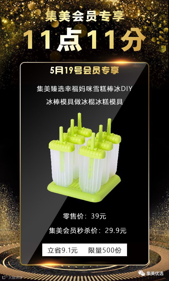 5月19日,11:11,集美臻选幸福妈咪雪糕棒冰DIY冰棒模具做冰棍冰糕模具,原价39元,建议零售价29.9元,限量500份,手慢无!!!