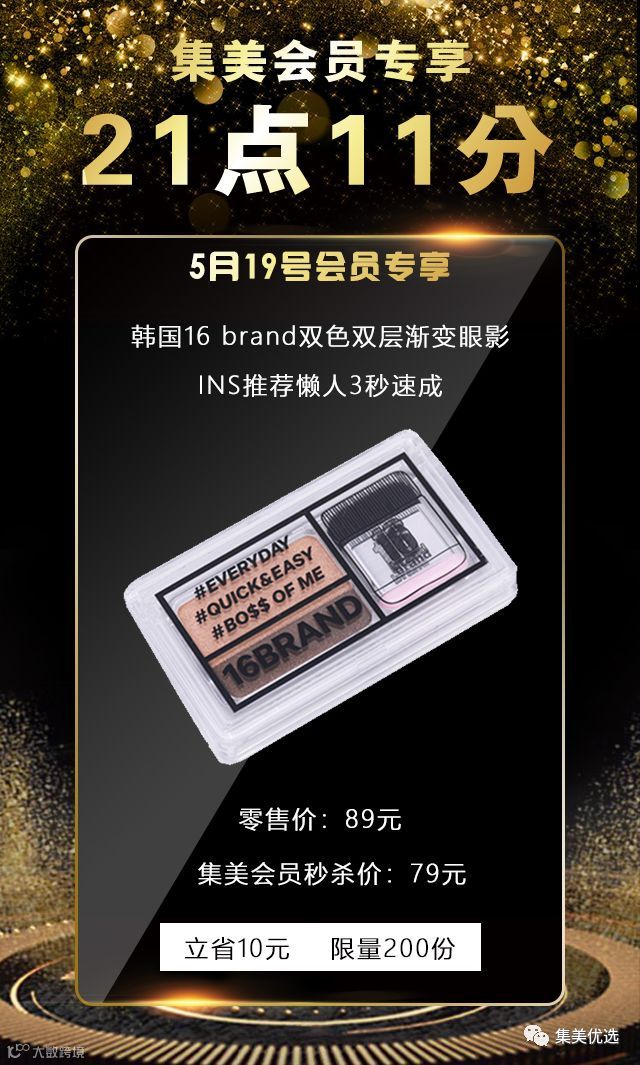 5月19日,21:11,韩国16 brand双色双层渐变眼影INS推荐懒人3秒速成,原价89元,建议零售价79元,限量200份,手慢无!!!