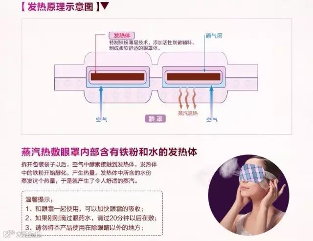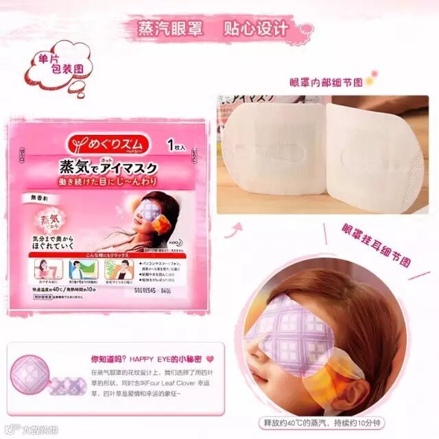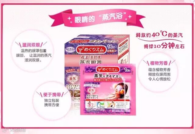 简单的说,它是一款会发热的眼罩,在你长时间的操作电脑,看电视,读书学习,眼睛会很疲惫,还有紧张学习生活的学生们,因不足的睡眠,造成部位供血困难,新陈代谢发生障碍,眼部缺水等问题,在花王眼罩的护理下,会让您拥有一个安逸舒适的环境!