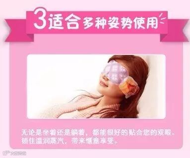 第三是更舒适,适合多种姿势使用,无论是坐着还是躺着,都能很好的贴合你的双眼,锁住温润蒸汽,带来惬意享受。