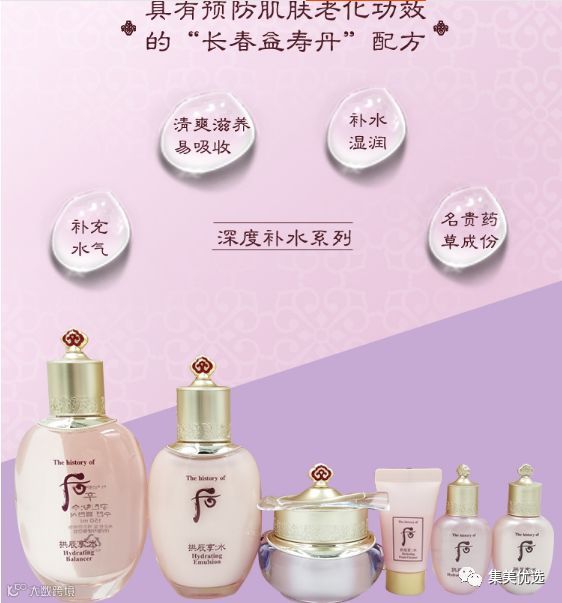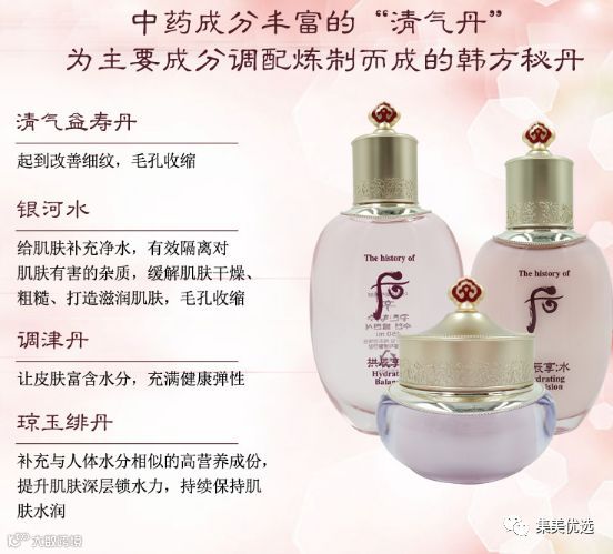 啫喱质地,很快被肌肤吸收,如水一般的流动感,产品中含有宫廷养颜秘方调律丹、清气益寿丹,调理肌肤水脉平衡,在此基础上添加为肌肤注入纯净之水的银河水,同时运用湿润泡制法研制的琼玉绯丹为肌肤持久锁水。水妍面霜香味清新,是夏日补水圣品,产品具有很好延展性,吸收后留下薄薄的保护层,给到肌肤一层水薄膜。