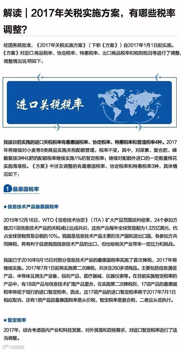 海关总署解读丨2017年关税实施方案,有哪些税率调整?