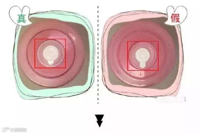 正品瓶盖内部为白色透明的塑料,