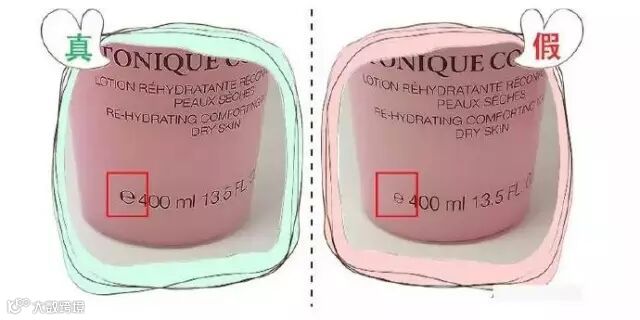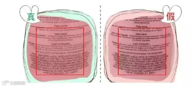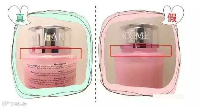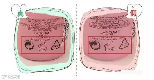 条形码的部分区别不大,假的文字比较不清楚,特别是兰蔻下面那个PARIS字体大不一样,也比较小,不要相信什么手机扫码软件,假的那个也可以扫出来。