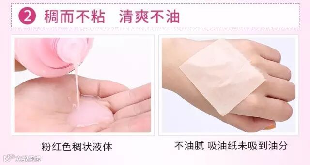 很好玩的地方是,粉水的液体看起来有点稠,可是涂开后却吸收很快,一点都不粘腻,用吸油纸根本吸收不到油分,水润而不油腻。