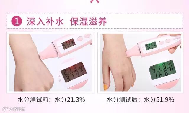 涂粉水前水分度21.3%,涂粉水后51.9%,水分值整整提高了30%