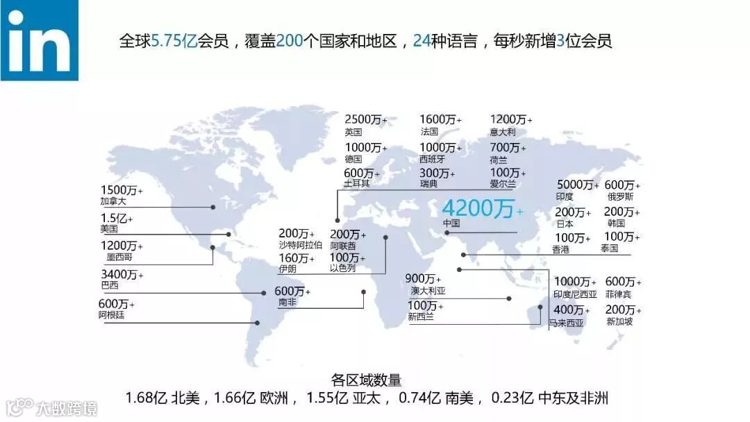 根据最新数据显示,LinkedIn领英全球用户总计5.75亿,在LinkedIn领英这个庞大的用户群体中,有多少我们的潜在目标客户群体呢?如果让他们成为我们的LinkedIn领英好友又该是多大的价值?