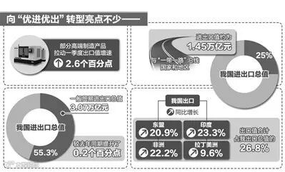 “在一季度外贸数据中,‘优进优出’方面的亮点开始呈现。”黄颂平说,目前我国更加注重先进技术、关键设备和重要零部件的进口。
