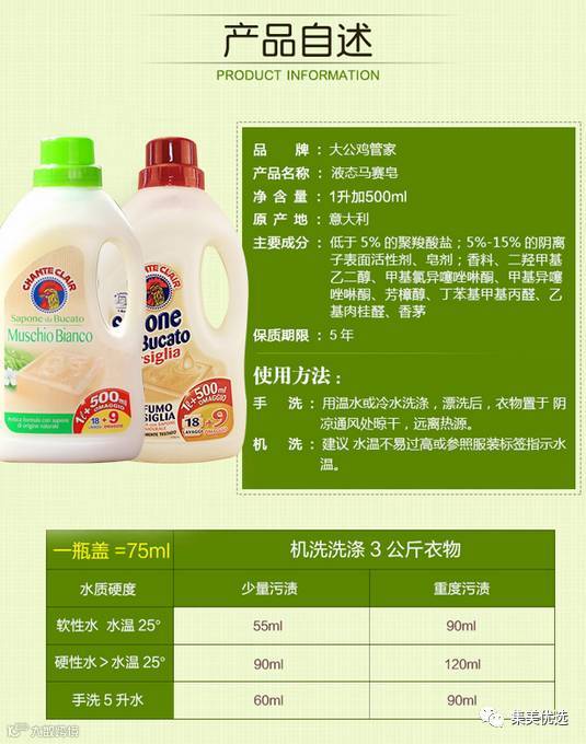 意大利Chante Clair 大公鸡头管家洗衣液 1L+500ml 颜色随机发货