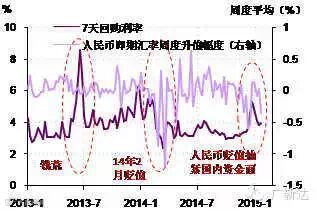 在去年2月,人民银行通过大量卖出人民币,主动压低了人民币汇率,打掉了当时市场内的人民币升值预期,为去年3月汇率日内波动幅度平稳放大创造了条件。而当时人民银行卖出的人民币(也就是外汇占款)也补充了金融市场的资金,令国内利率在人民币走贬的同时走低。