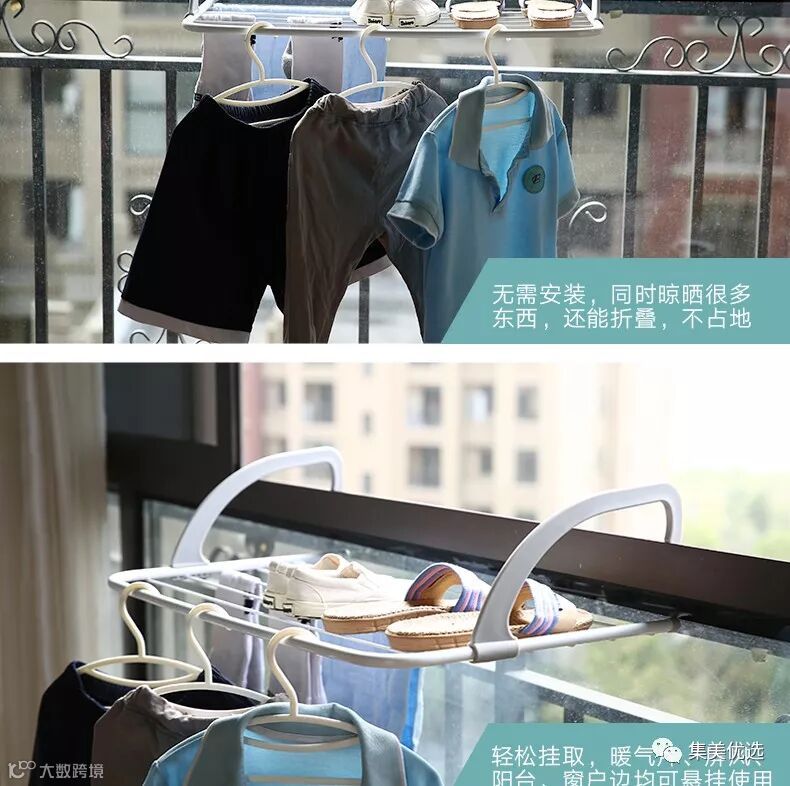 阳台栏杆晾衣架可折叠悬挂式暖气片置物架室外多功能晒鞋架晾晒架