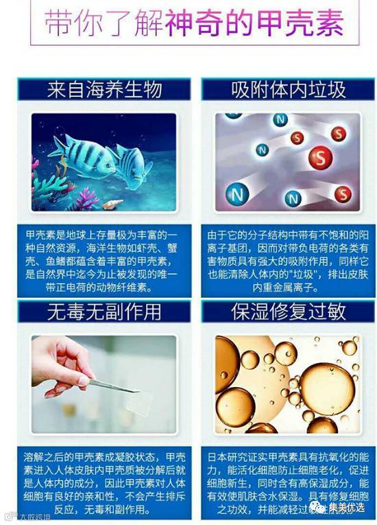 2. 肌肤修护:海洋生物极强的肌肤再生能力就源于丰富的甲壳素,可使受损肌肤在短时间内得到自然修护