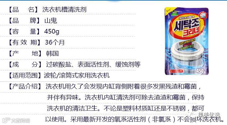 韩国山鬼洗衣机清洁剂450g*4包
