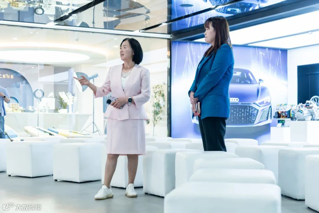 在应总的陪同下,记者们饶有兴趣地参观了我们的元宇宙展厅,深入了解我们用数智驱动在外贸领域的科技创新成果。