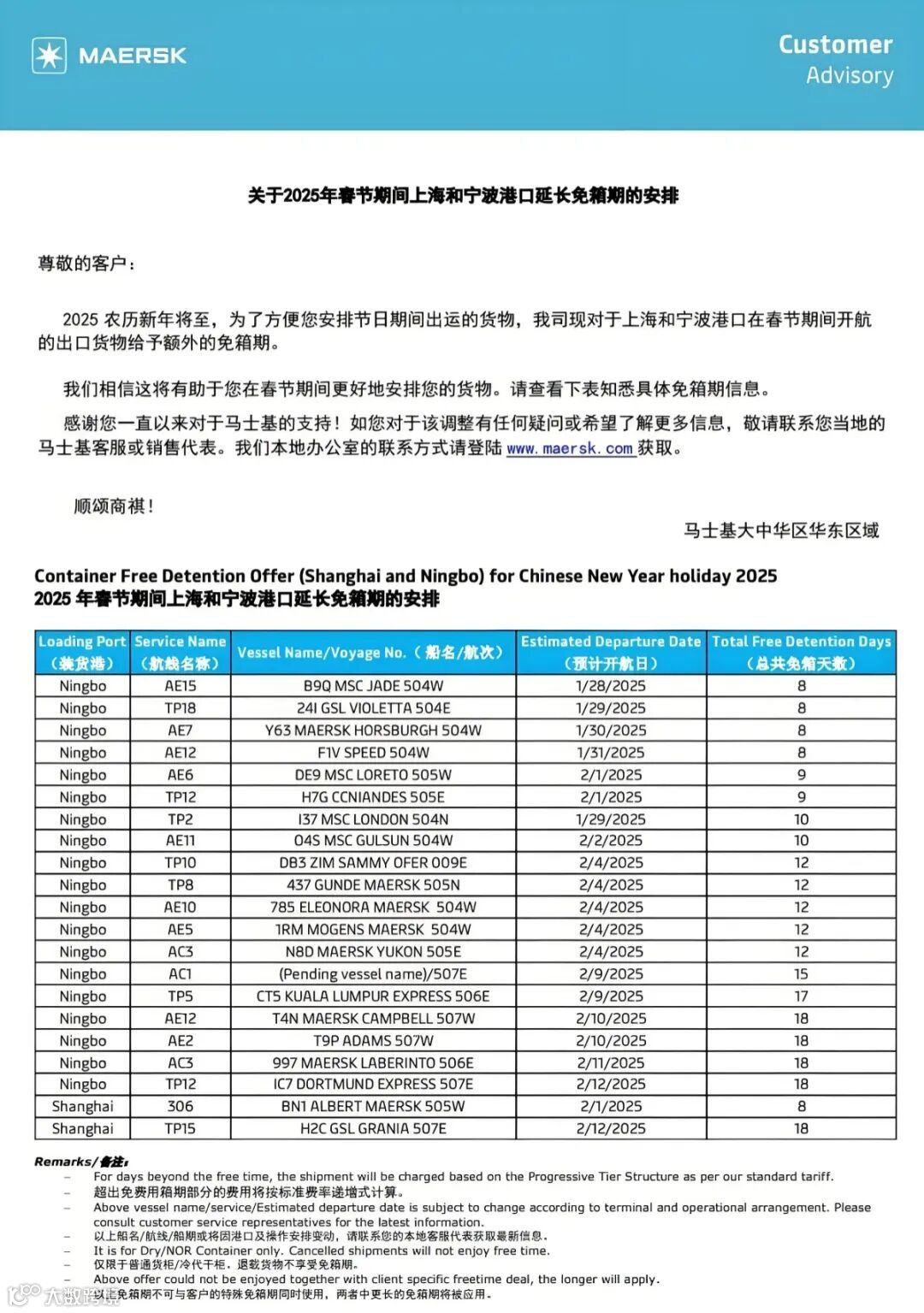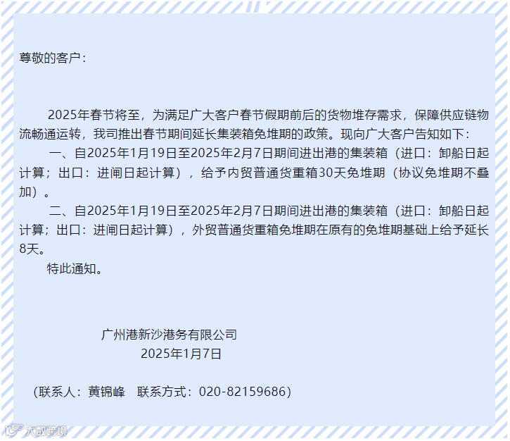 关于春节假期延长外贸集装箱免堆期的通知