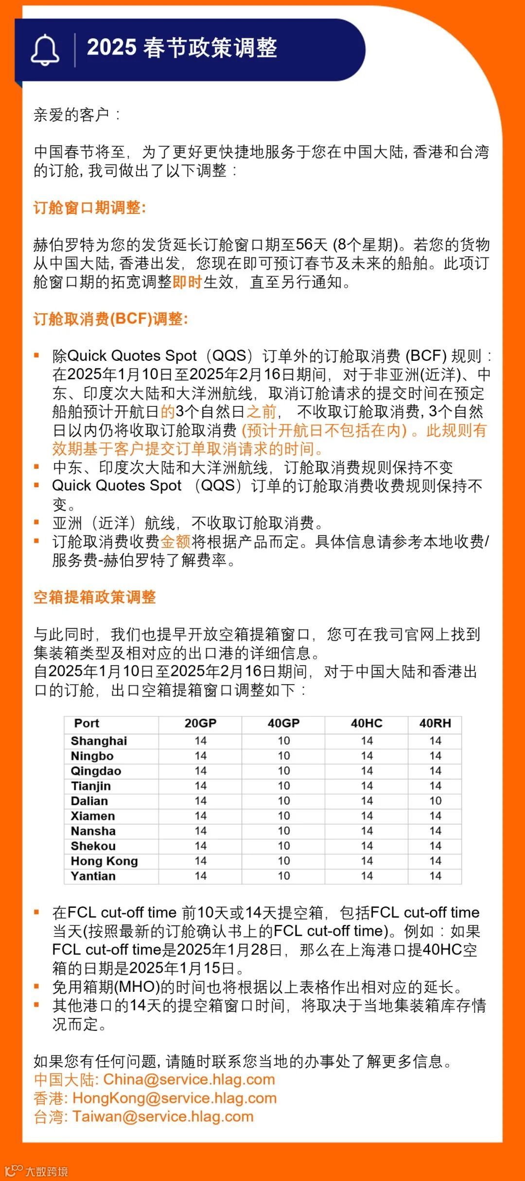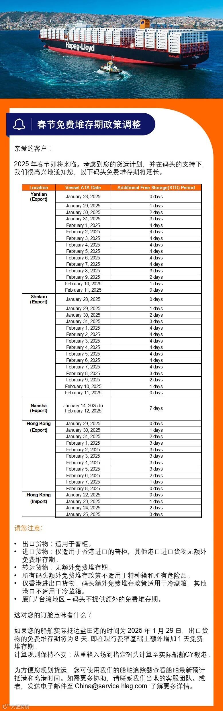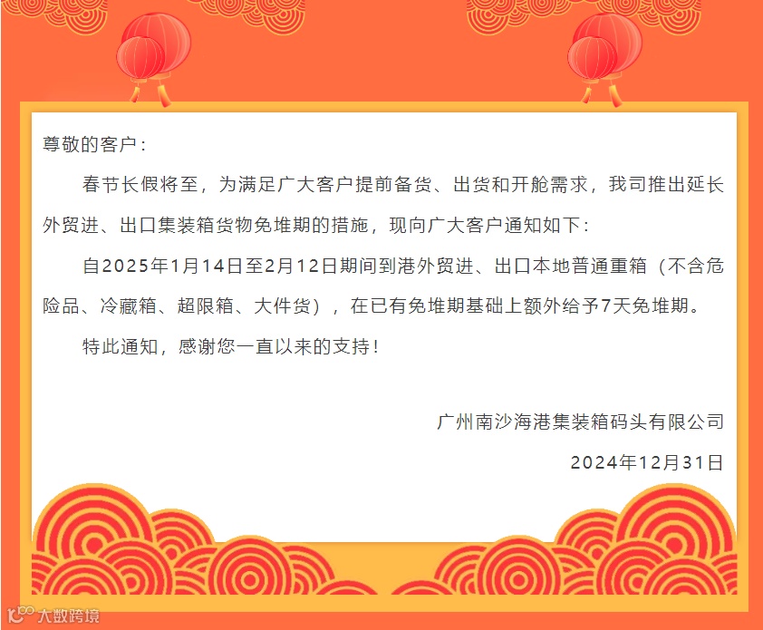 关于2025年春节期间出口免用箱通知