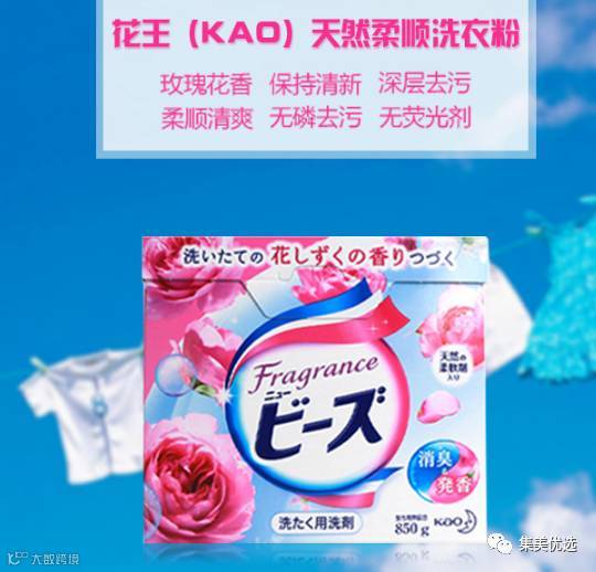 日本 KAO 花王天然柔顺洗衣粉850g(玫瑰花香不含荧光)