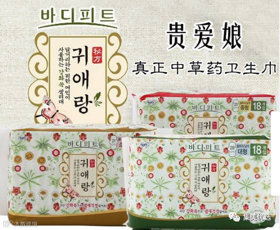 韩国LG贵爱娘 中药配方卫生巾 无荧光剂日夜