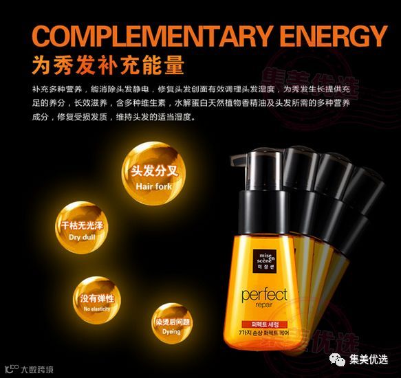 为秀发生长提供充足的养分,长效滋养含有多种维生素、水解蛋白天然植物香精油及头发所需的多种营养成分修复受损发质,维持头发的适当的湿度经常使用能令你的秀发丰盈飘逸、易于梳理、柔顺爽滑闪亮动人光泽